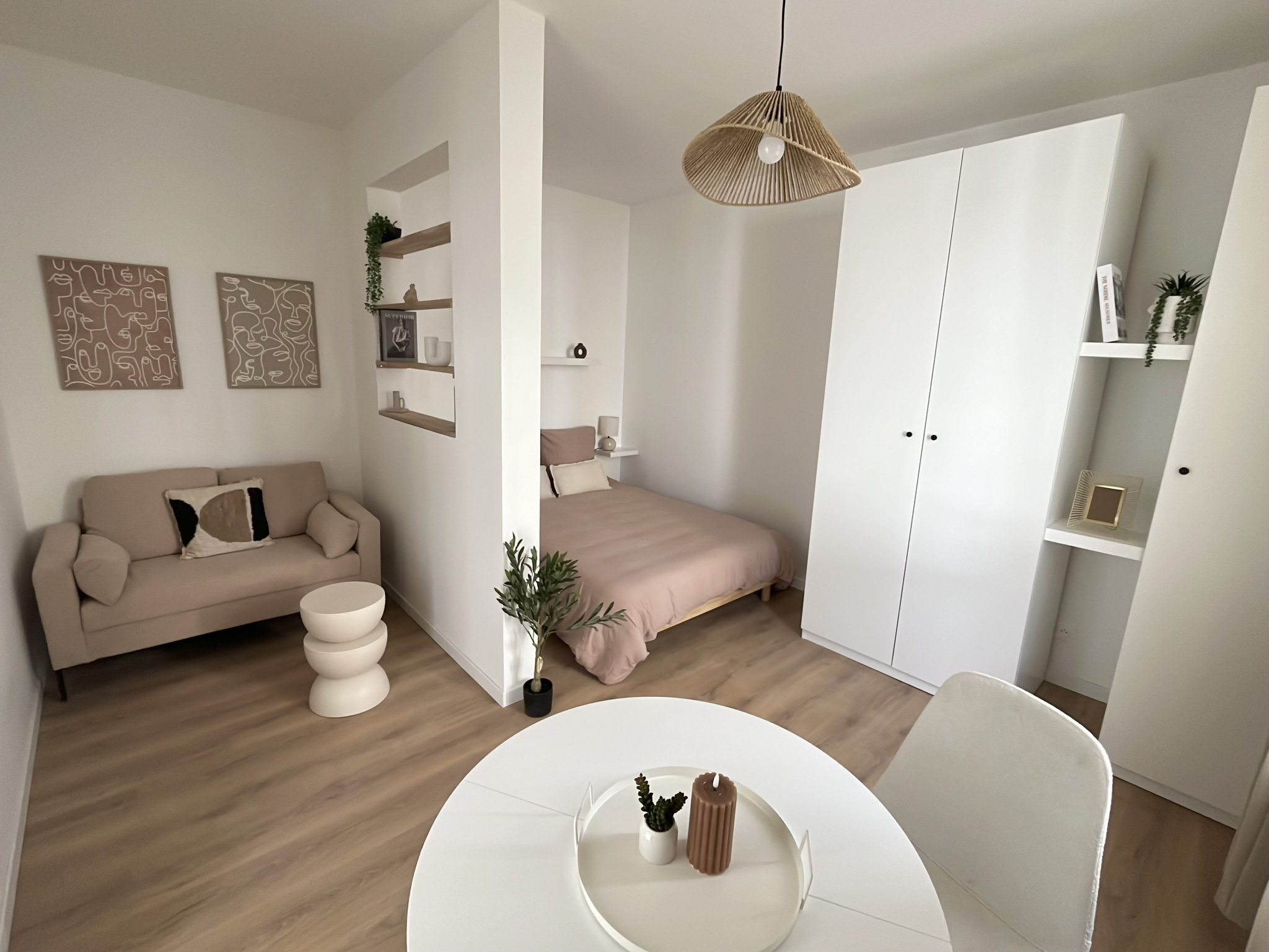 - une entrée, une cuisine aménagée et équipée, une salle d'eau avec WC, une pièce de vie avec coin salon et coin nuit.