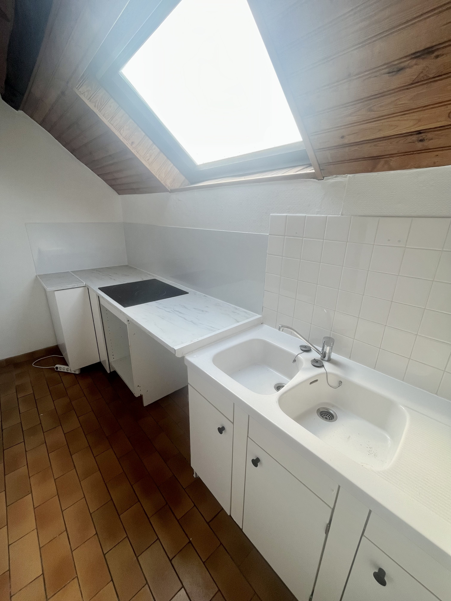 - Au 2ème étage : dégagement, salle de bains avec WC, une cuisine aménagée et équipée d'une plaque de cuisson, un séjour-salon.