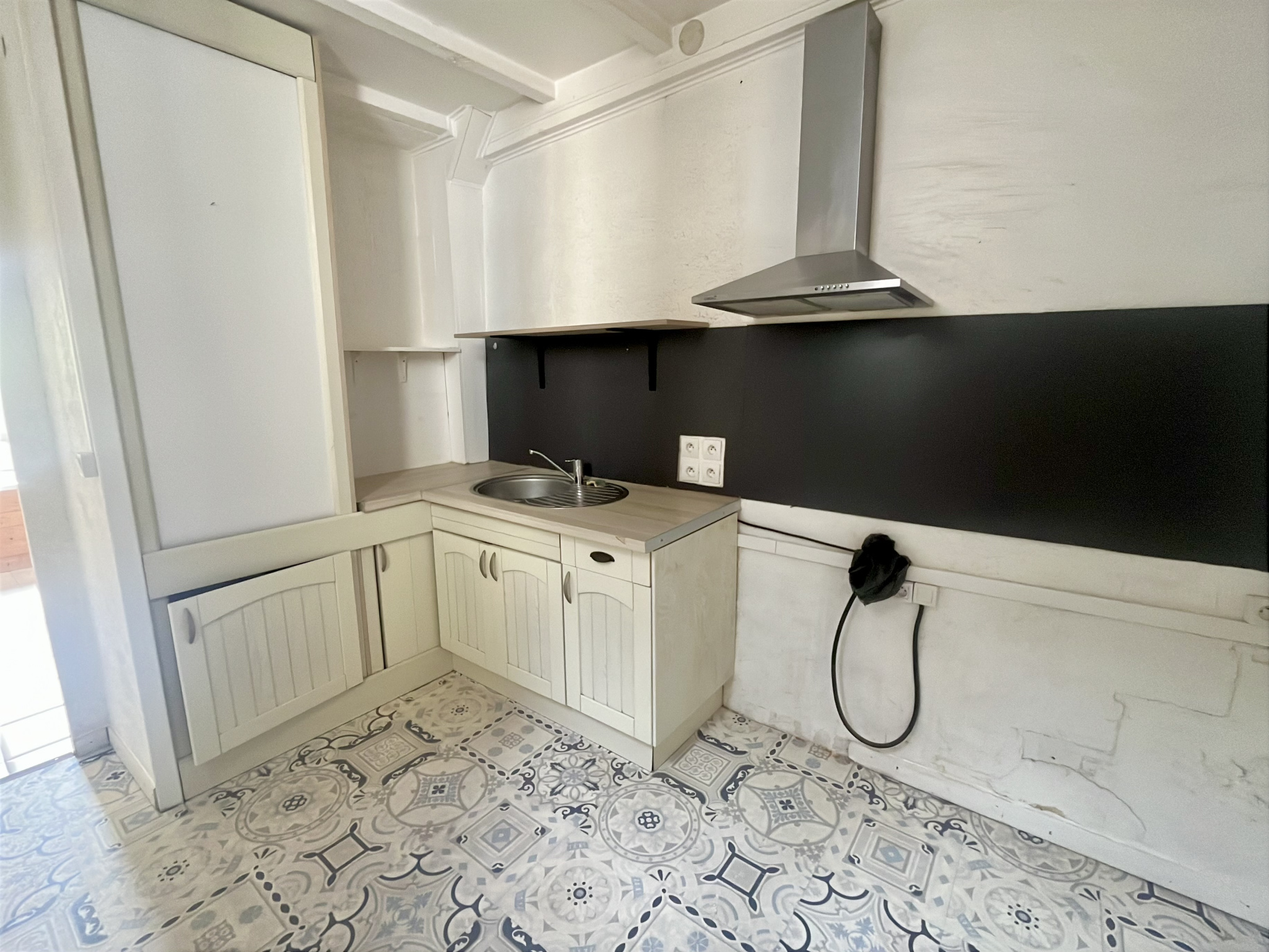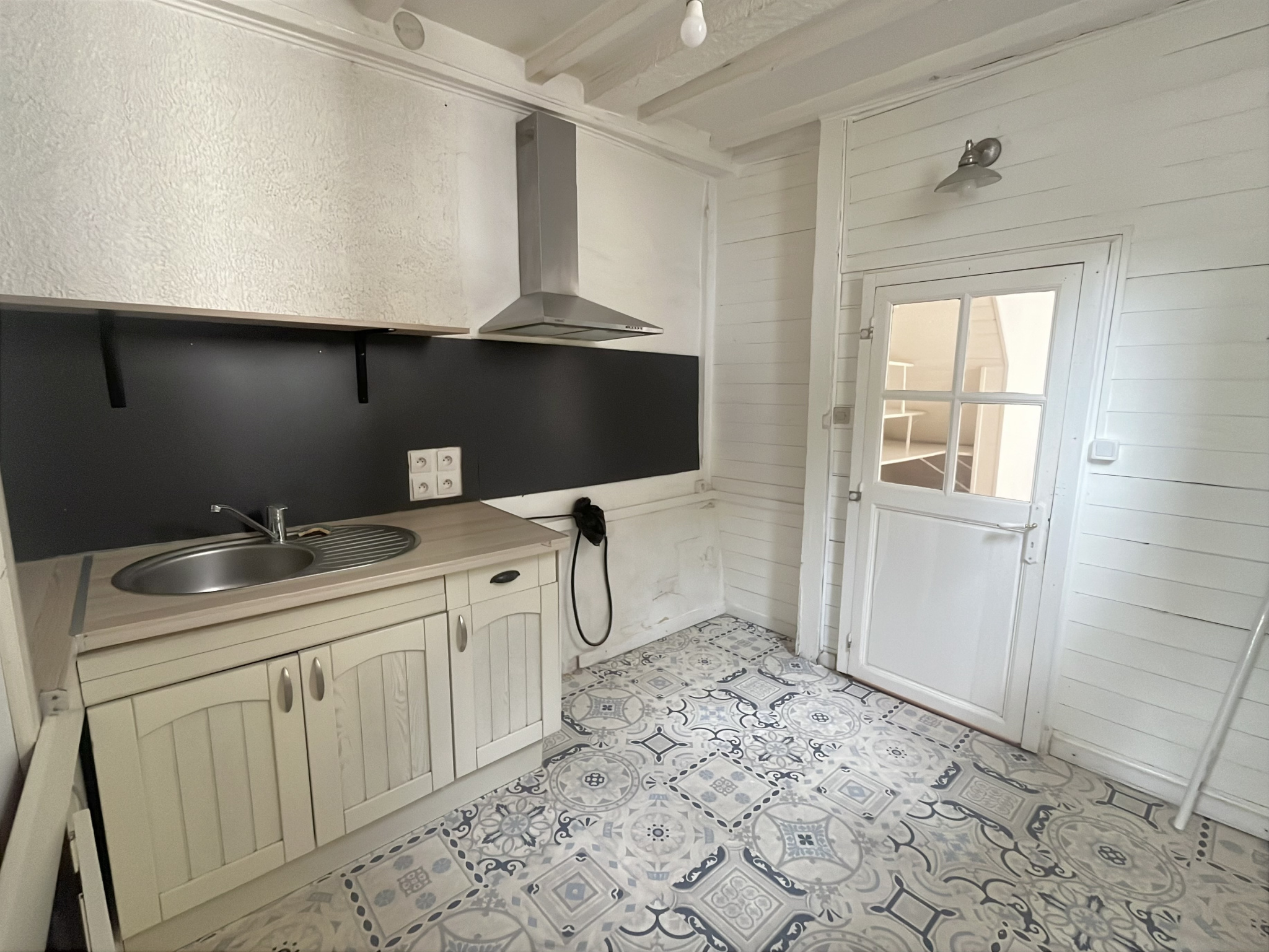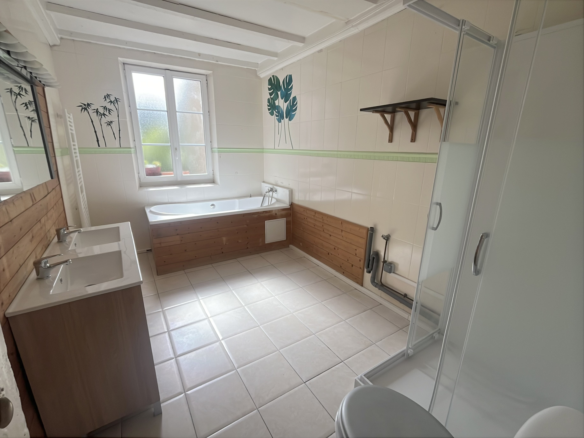 - entrée sur séjour, une cuisine aménagée, une chambre, une salle de bains avec baignoire, douche et WC.