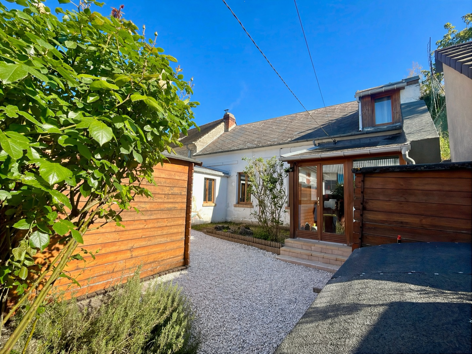 Accès véhicule à l'arrière. L'ensemble sur 326m² de jardin.