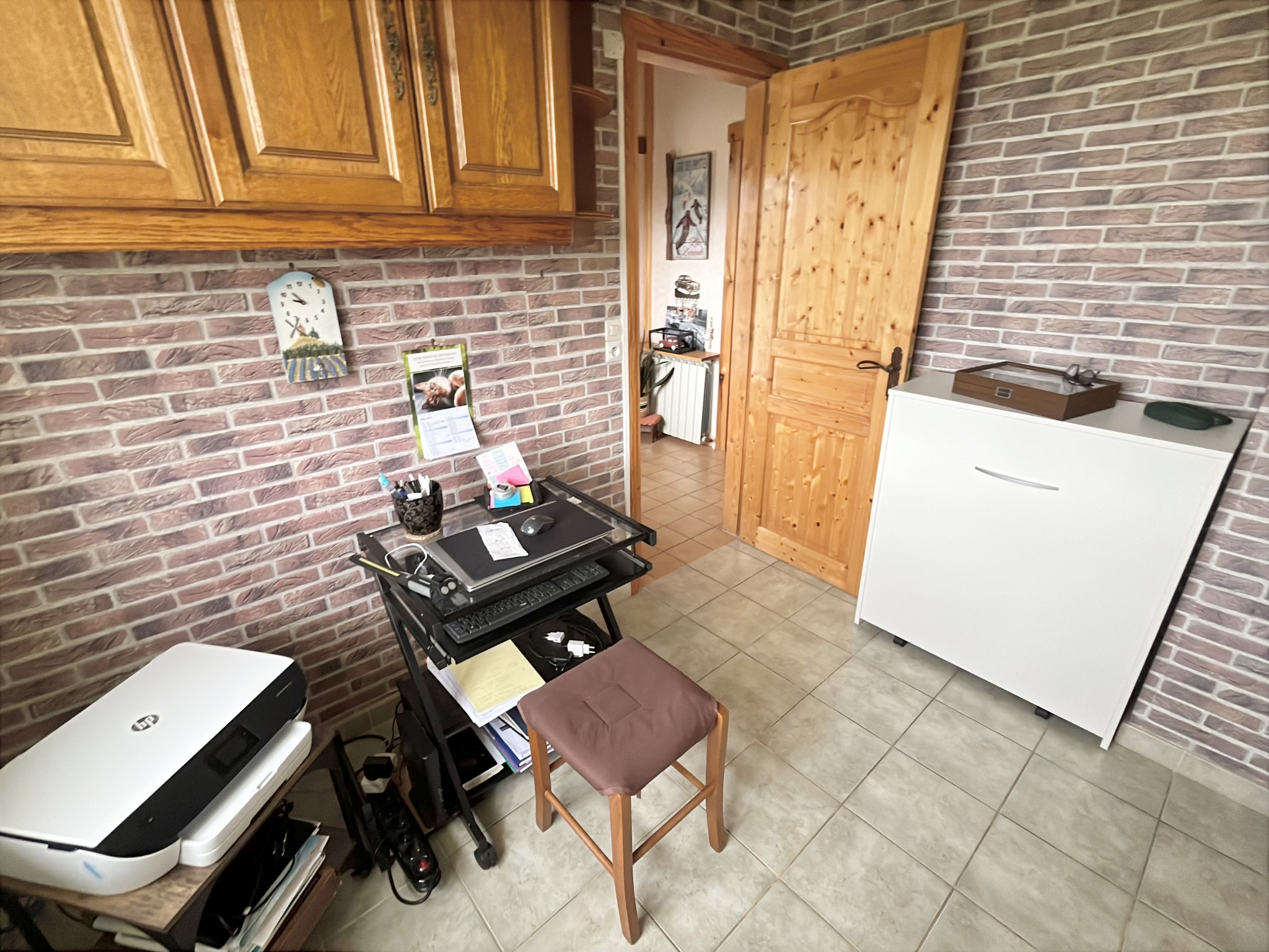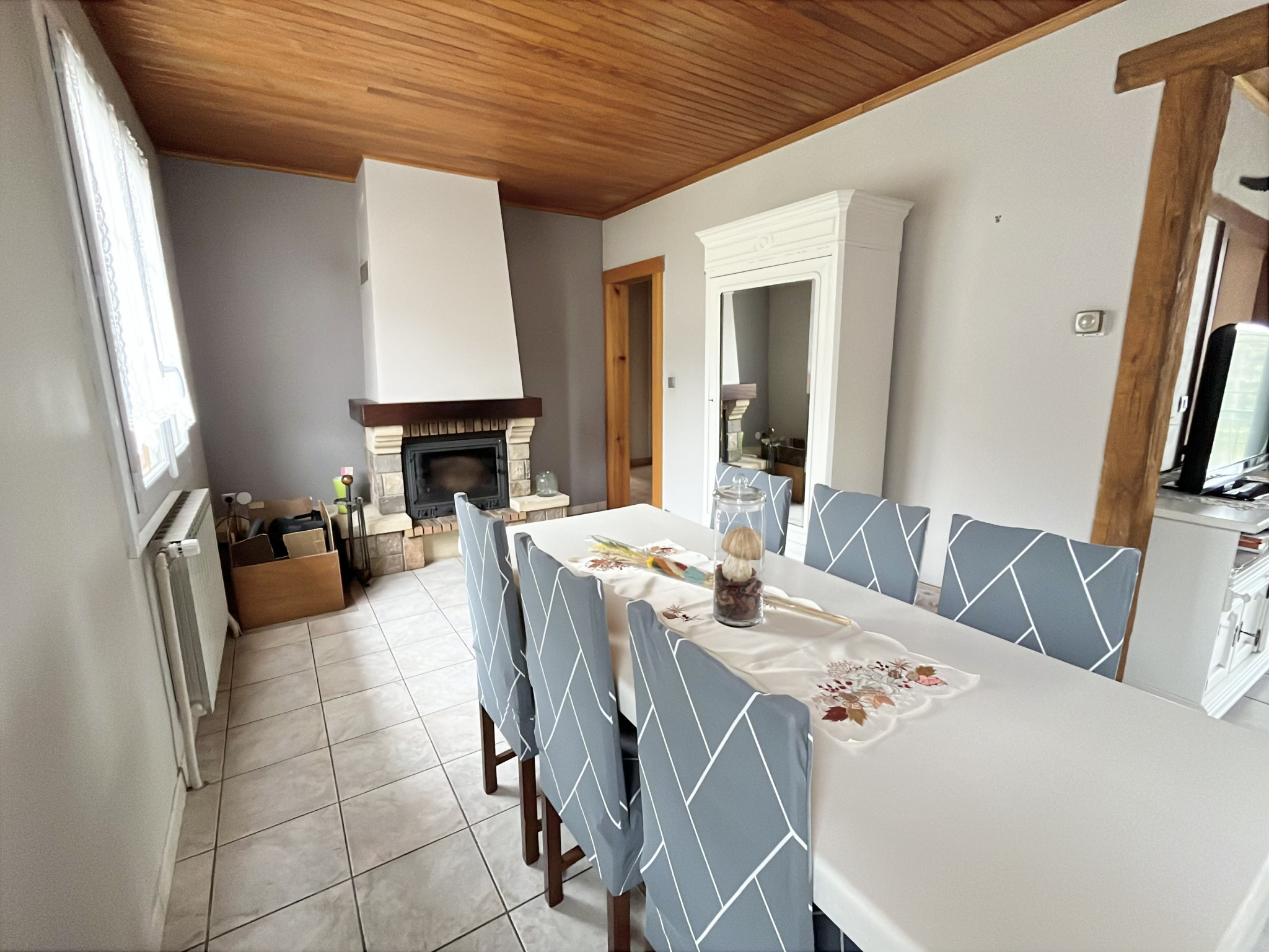 - au rez-de-chaussée : une entrée, un salon, une salle à manger avec cheminée insert, une cuisine aménagée et équipée, un bureau, un WC, une chambre, une salle de bains.