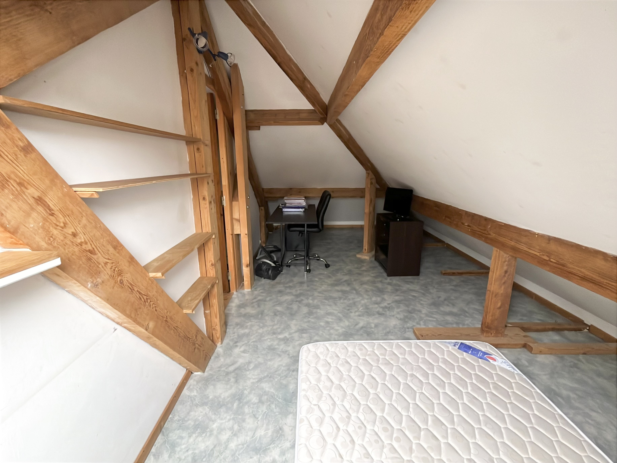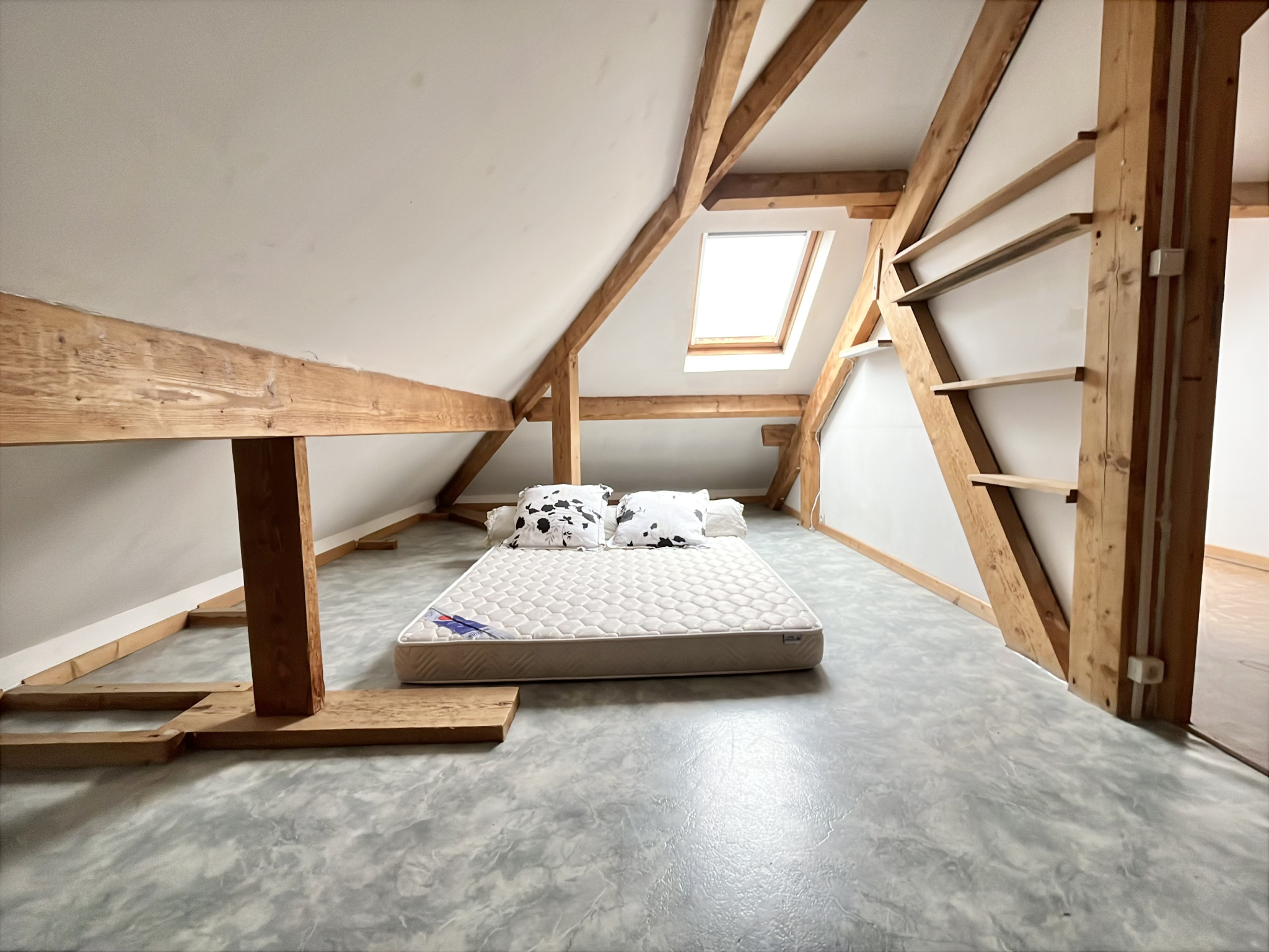 - à l'étage : vaste palier, 2 chambres, une salle d'eau avec WC.