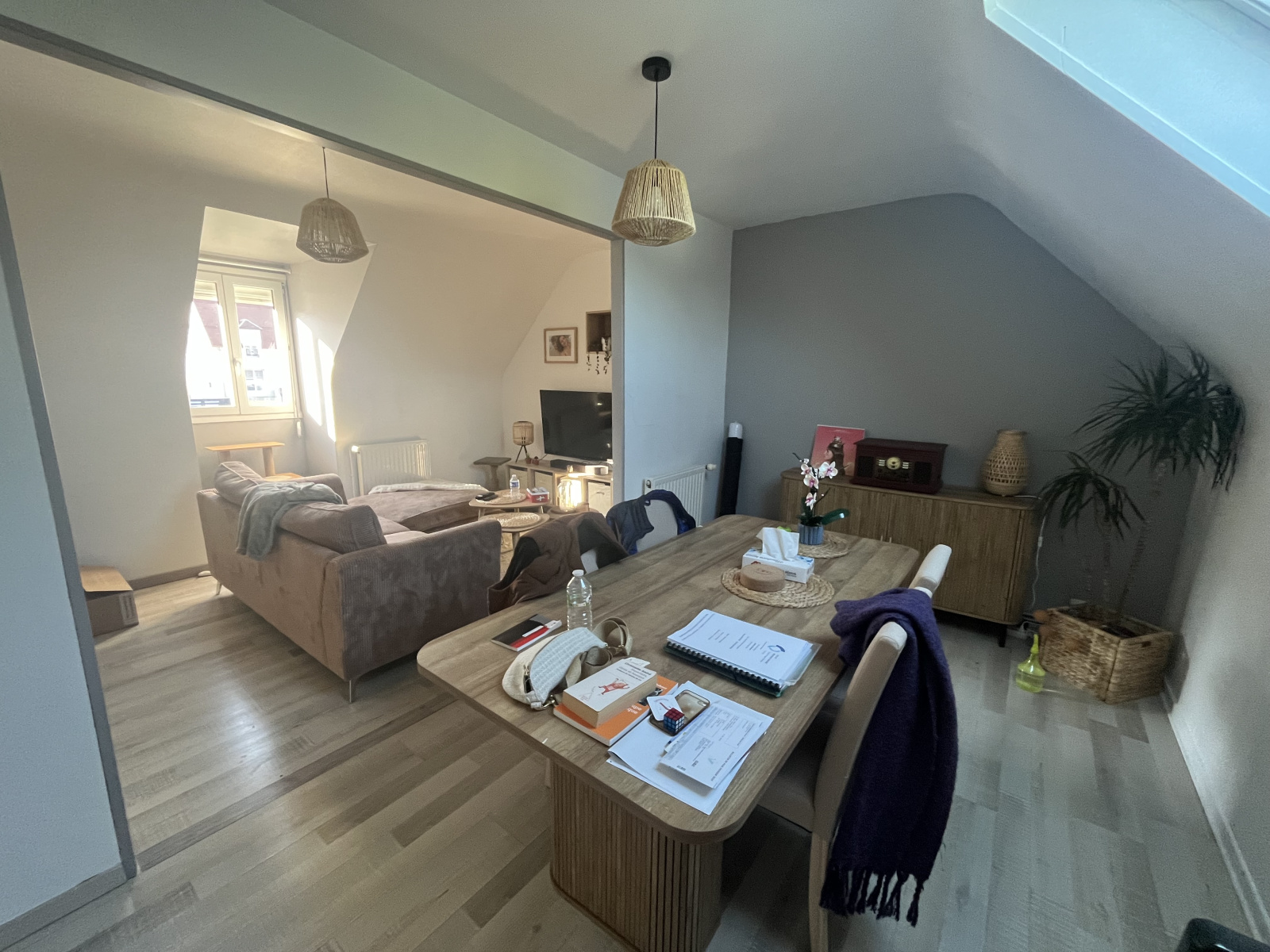 - Un appartement en duplex de 60.88m² comprenant : une cuisine aménagée et équipée, un séjour avec cheminée. A l'étage : une salle d'eau avec WC, 2 chambres. Terrasse. 2 places de parking. LOUÉ = 780€ C.C