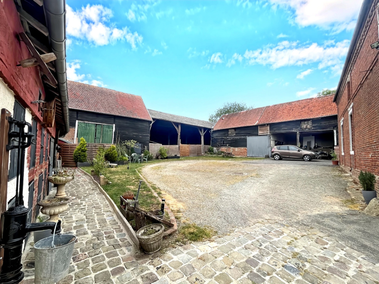 Cet ancien corps de ferme dispose de nombreux potentiels avec ses nombreuses granges (de 110m² et 200m²), un hangar de 355m², et d'une forge de 55m²...