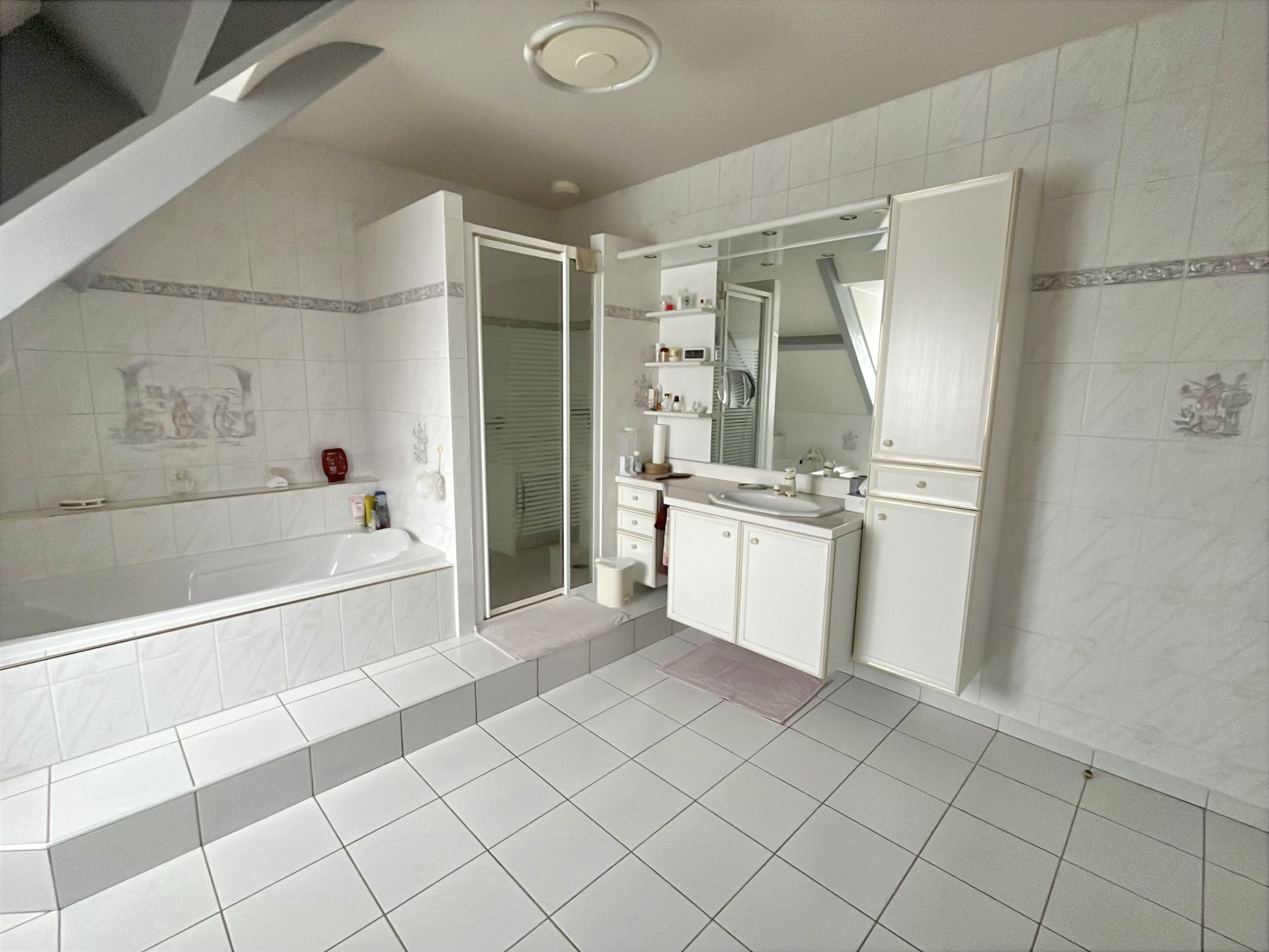 - à l'étage : palier desservant 2 belles chambres, un bureau, un dressing, une grande salle de bains (avec baignoire et douche), un WC.