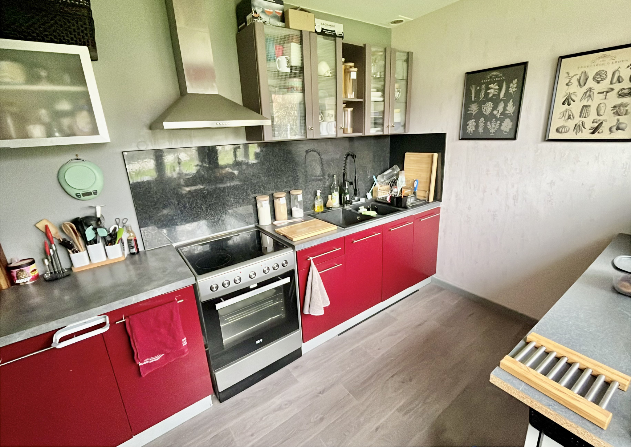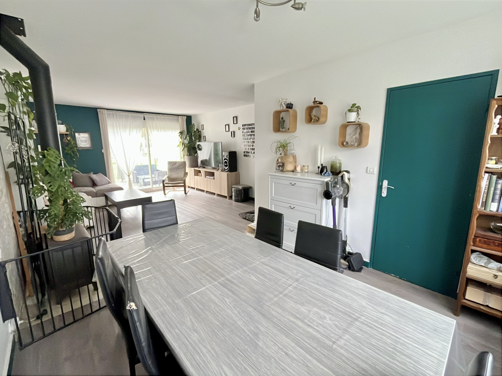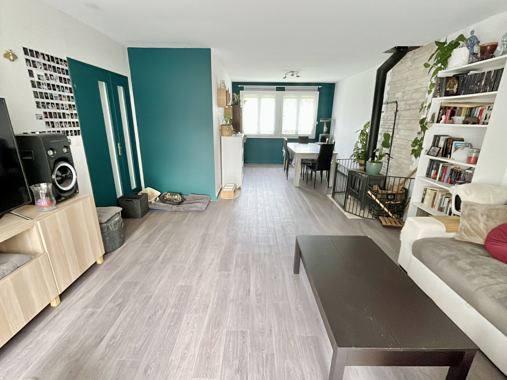 - une entrée, un cellier, un séjour double avec poêle à bois, une cuisine aménagée et équipée, couloir avec placards desservant 3 chambres, une buanderie, une salle d'eau.